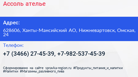 Ассоль, ателье по адресу 628606, Ханты-Мансийский АО, Нижневартовск, Омская, 24 в дальнейшем Организация, размещена в следующих категориях: