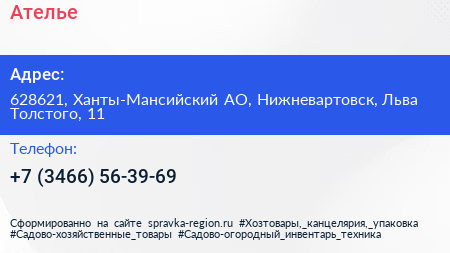 Ателье по адресу 628621, Ханты-Мансийский АО, Нижневартовск, Льва Толстого, 11 в дальнейшем Организация, размещена в следующих категориях: