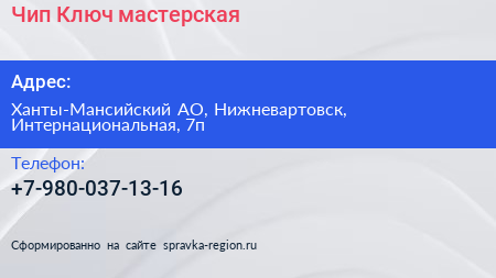 Чип-Ключ, мастерская по адресу Ханты-Мансийский АО, Нижневартовск, Интернациональная, 7п в дальнейшем Организация, размещена в следующих категориях:
