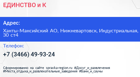 ЕДИНСТВО и К по адресу Ханты-Мансийский АО, Нижневартовск, Индустриальная, 30 ст4 в дальнейшем Организация, размещена в следующих категориях: