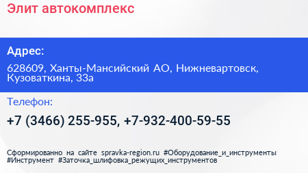 Элит, автокомплекс по адресу 628609, Ханты-Мансийский АО, Нижневартовск, Кузоваткина, 33а в дальнейшем Организация, размещена в следующих категориях: