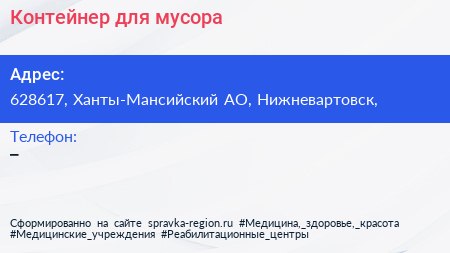 Контейнер для мусора по адресу 628617, Ханты-Мансийский АО, Нижневартовск, в дальнейшем Организация, размещена в следующих категориях:
