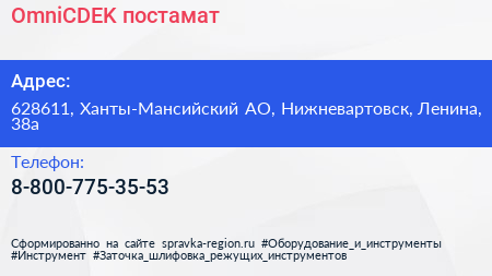 OmniCDEK, постамат по адресу 628611, Ханты-Мансийский АО, Нижневартовск, Ленина, 38а в дальнейшем Организация, размещена в следующих категориях:
