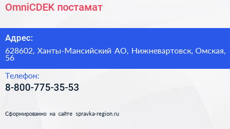 OmniCDEK, постамат по адресу 628602, Ханты-Мансийский АО, Нижневартовск, Омская, 56 в дальнейшем Организация, размещена в следующих категориях: