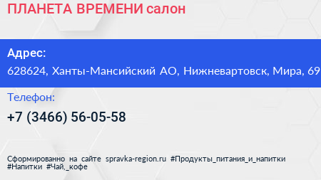 ПЛАНЕТА ВРЕМЕНИ, салон по адресу 628624, Ханты-Мансийский АО, Нижневартовск, Мира, 69 в дальнейшем Организация, размещена в следующих категориях: