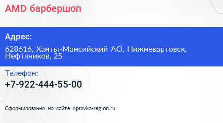 AMD, барбершоп по адресу 628616, Ханты-Мансийский АО, Нижневартовск, Нефтяников, 25 в дальнейшем Организация, размещена в следующих категориях: