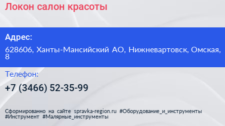 Локон, салон красоты по адресу 628606, Ханты-Мансийский АО, Нижневартовск, Омская, 8 в дальнейшем Организация, размещена в следующих категориях: