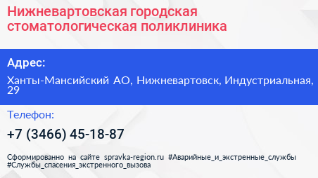 Нижневартовская городская стоматологическая поликлиника по адресу Ханты-Мансийский АО, Нижневартовск, Индустриальная, 29 в дальнейшем Организация, размещена в следующих категориях: