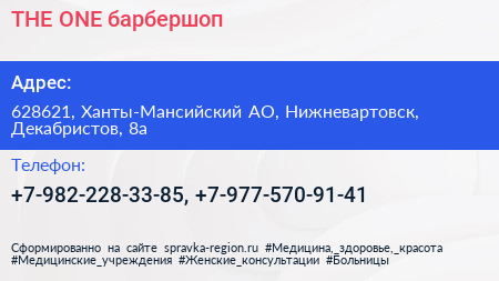 THE ONE, барбершоп по адресу 628621, Ханты-Мансийский АО, Нижневартовск, Декабристов, 8а в дальнейшем Организация, размещена в следующих категориях: