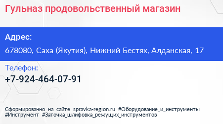 Гульназ, продовольственный магазин по адресу 678080, Саха (Якутия), Нижний Бестях, Алданская, 17 в дальнейшем Организация, размещена в следующих категориях: