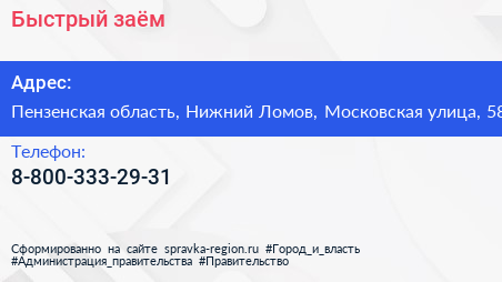 Быстрый заём по адресу Пензенская область, Нижний Ломов, Московская улица, 58 в дальнейшем Организация, размещена в следующих категориях: