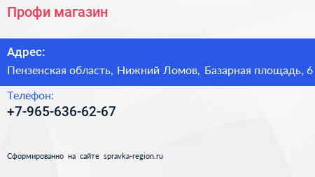 Профи, магазин по адресу Пензенская область, Нижний Ломов, Базарная площадь, 6 в дальнейшем Организация, размещена в следующих категориях: