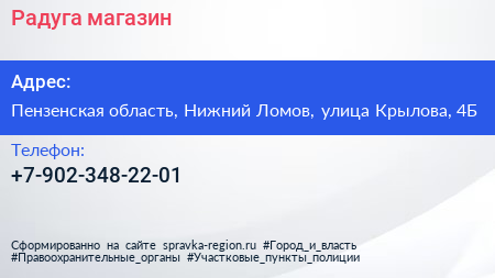 Радуга, магазин по адресу Пензенская область, Нижний Ломов, улица Крылова, 4Б в дальнейшем Организация, размещена в следующих категориях: