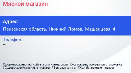 Мясной магазин по адресу Пензенская область, Нижний Ломов, Машенцева, 4 в дальнейшем Организация, размещена в следующих категориях: