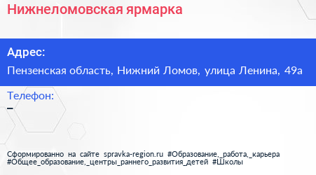Нижнеломовская ярмарка по адресу Пензенская область, Нижний Ломов, улица Ленина, 49а в дальнейшем Организация, размещена в следующих категориях: