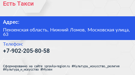 Есть! Такси по адресу Пензенская область, Нижний Ломов, Московская улица, 63 в дальнейшем Организация, размещена в следующих категориях: