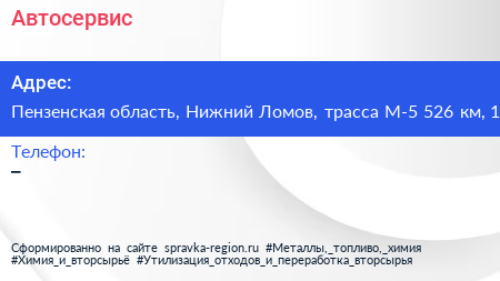 Автосервис по адресу Пензенская область, Нижний Ломов, трасса М-5 526 км, 1 в дальнейшем Организация, размещена в следующих категориях: