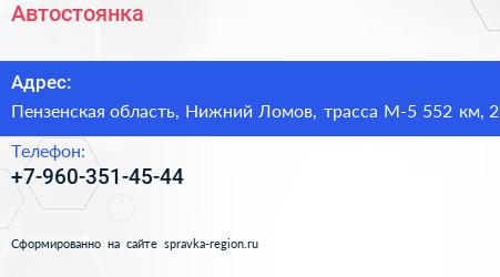 Адрес: Пензенская область, Нижний Ломов, трасса М-5 528 км, 2
