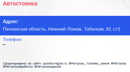 Автостоянка по адресу Пензенская область, Нижний Ломов, Табачная, 81 ст1 в дальнейшем Организация, размещена в следующих категориях: