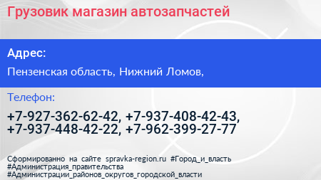 Грузовик, магазин автозапчастей по адресу Пензенская область, Нижний Ломов, в дальнейшем Организация, размещена в следующих категориях: