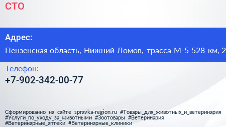 СТО по адресу Пензенская область, Нижний Ломов, трасса М-5 528 км, 2 в дальнейшем Организация, размещена в следующих категориях: