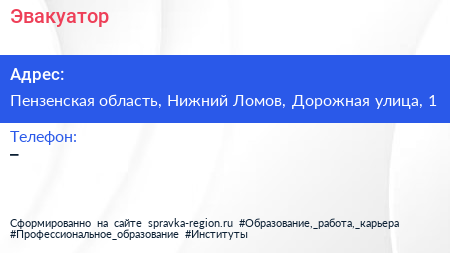 Эвакуатор по адресу Пензенская область, Нижний Ломов, Дорожная улица, 1 в дальнейшем Организация, размещена в следующих категориях: