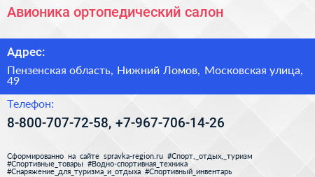 Авионика, ортопедический салон по адресу Пензенская область, Нижний Ломов, Московская улица, 49 в дальнейшем Организация, размещена в следующих категориях: