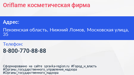 Oriflame, косметическая фирма по адресу Пензенская область, Нижний Ломов, Московская улица, 35 в дальнейшем Организация, размещена в следующих категориях: