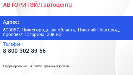 АВТОРИТЭЙЛ, автоцентр по адресу 603057, Нижегородская область, Нижний Новгород, проспект Гагарина, 23в к2 в дальнейшем Организация, размещена в следующих категориях: