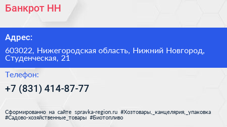 Банкрот-НН по адресу 603022, Нижегородская область, Нижний Новгород, Студенческая, 21 в дальнейшем Организация, размещена в следующих категориях: