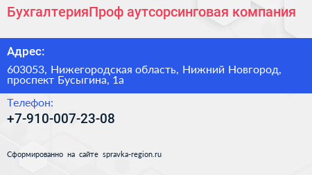 БухгалтерияПроф, аутсорсинговая компания по адресу 603053, Нижегородская область, Нижний Новгород, проспект Бусыгина, 1а в дальнейшем Организация, размещена в следующих категориях:
