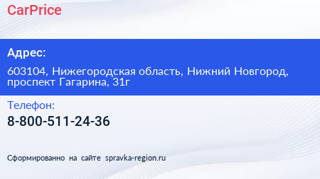 CarPrice по адресу 603104, Нижегородская область, Нижний Новгород, проспект Гагарина, 31г в дальнейшем Организация, размещена в следующих категориях: