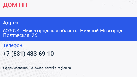 ДОМ.НН по адресу 603024, Нижегородская область, Нижний Новгород, Полтавская, 26 в дальнейшем Организация, размещена в следующих категориях: