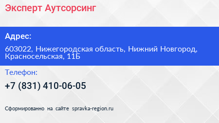 Эксперт Аутсорсинг по адресу 603022, Нижегородская область, Нижний Новгород, Красносельская, 11Б в дальнейшем Организация, размещена в следующих категориях: