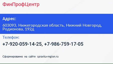 ФинПрофЦентр по адресу 603093, Нижегородская область, Нижний Новгород, Родионова, 192д в дальнейшем Организация, размещена в следующих категориях: