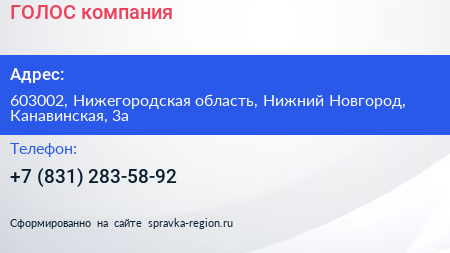 ГОЛОС, компания по адресу 603002, Нижегородская область, Нижний Новгород, Канавинская, 3а в дальнейшем Организация, размещена в следующих категориях:
