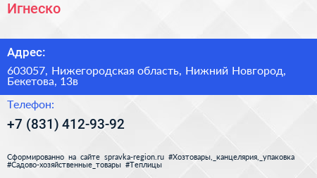 Игнеско по адресу 603057, Нижегородская область, Нижний Новгород, Бекетова, 13в в дальнейшем Организация, размещена в следующих категориях: