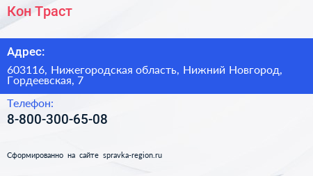 Кон-Траст по адресу 603116, Нижегородская область, Нижний Новгород, Гордеевская, 7 в дальнейшем Организация, размещена в следующих категориях: