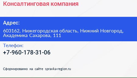 Консалтинговая компания по адресу 603162, Нижегородская область, Нижний Новгород, Академика Сахарова, 111 в дальнейшем Организация, размещена в следующих категориях: