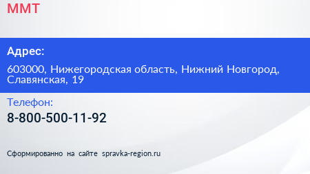 ММТ по адресу 603000, Нижегородская область, Нижний Новгород, Славянская, 19 в дальнейшем Организация, размещена в следующих категориях: