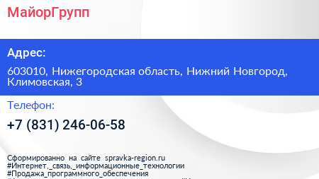 МайорГрупп по адресу 603010, Нижегородская область, Нижний Новгород, Климовская, 3 в дальнейшем Организация, размещена в следующих категориях: