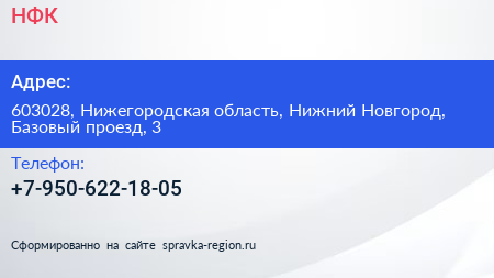 НФК по адресу 603028, Нижегородская область, Нижний Новгород, Базовый проезд, 3 в дальнейшем Организация, размещена в следующих категориях: