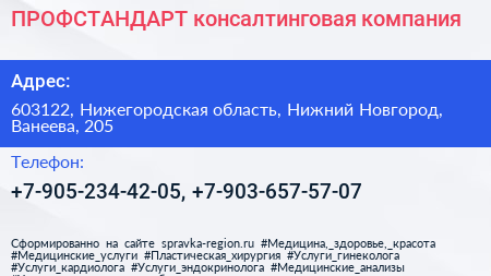 ПРОФСТАНДАРТ, консалтинговая компания по адресу 603122, Нижегородская область, Нижний Новгород, Ванеева, 205 в дальнейшем Организация, размещена в следующих категориях: