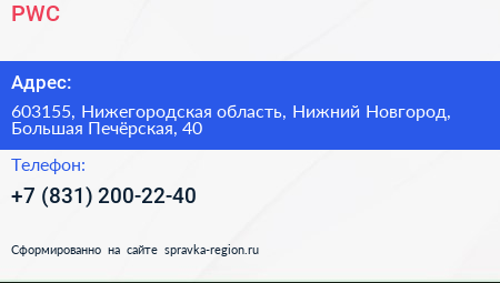 PWC по адресу 603155, Нижегородская область, Нижний Новгород, Большая Печёрская, 40 в дальнейшем Организация, размещена в следующих категориях:
