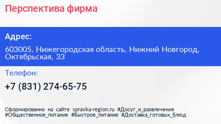 Перспектива, фирма по адресу 603005, Нижегородская область, Нижний Новгород, Октябрьская, 33 в дальнейшем Организация, размещена в следующих категориях: