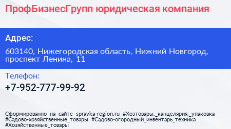 ПрофБизнесГрупп, юридическая компания по адресу 603140, Нижегородская область, Нижний Новгород, проспект Ленина, 11 в дальнейшем Организация, размещена в следующих категориях: