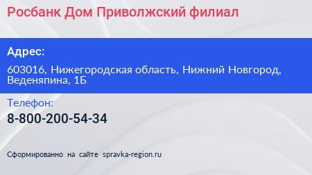 Росбанк Дом, Приволжский филиал по адресу 603016, Нижегородская область, Нижний Новгород, Веденяпина, 1Б в дальнейшем Организация, размещена в следующих категориях: