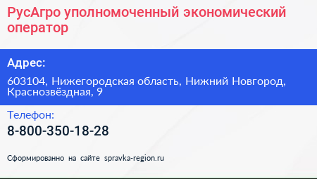 РусАгро, уполномоченный экономический оператор по адресу 603104, Нижегородская область, Нижний Новгород, Краснозвёздная, 9 в дальнейшем Организация, размещена в следующих категориях: