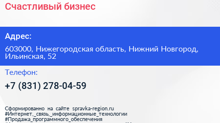 Счастливый бизнес по адресу 603000, Нижегородская область, Нижний Новгород, Ильинская, 52 в дальнейшем Организация, размещена в следующих категориях: