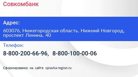 Совкомбанк по адресу 603076, Нижегородская область, Нижний Новгород, проспект Ленина, 40 в дальнейшем Организация, размещена в следующих категориях: